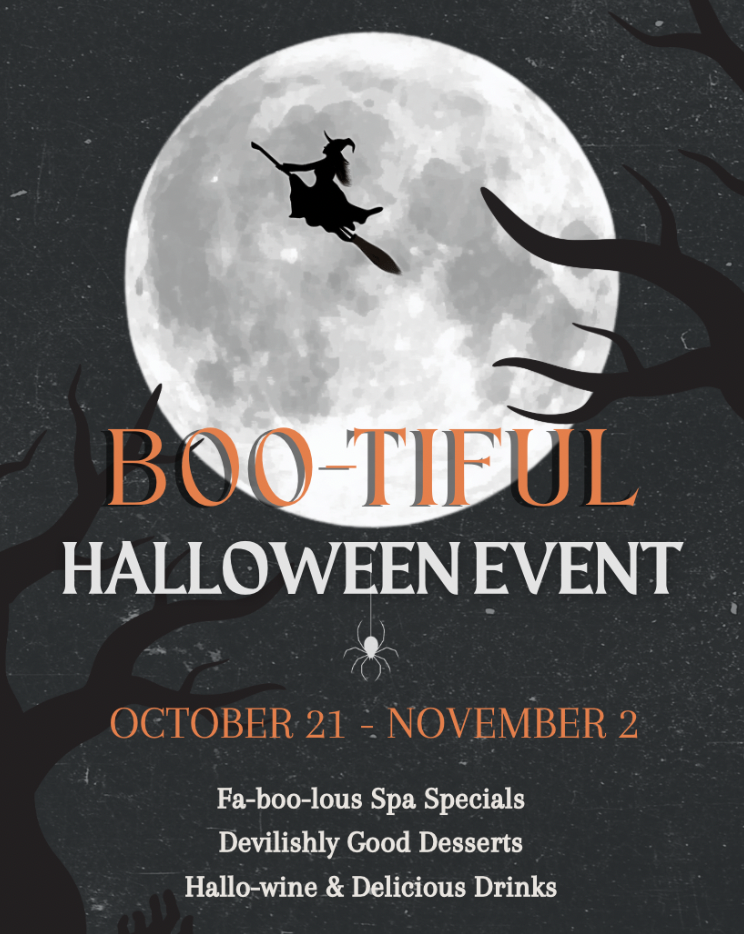 (Our Halloween services can be booked today through November 2nd.  Our Boo-tiful Halloween Event including the spa specials, decorations, & desserts will begin October 21st and run through November 2nd, 2025.  The specially priced Halloween services & package cannot be combined with other discounts or promotions.)